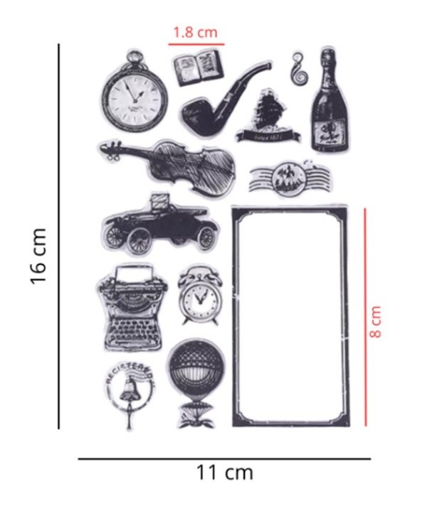 Descubre nuestra plancha de sellos de silicona con diseño de objetos vintage, ideal para tus proyectos de manualidades. Este producto es perfecto para crear impresiones únicas y dar un toque nostálgico a tus obras.
