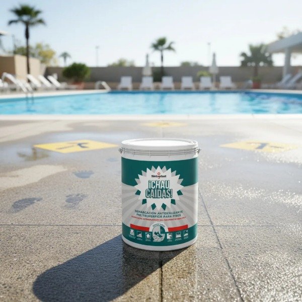 Demarcación Antideslizante 100 % acrílico para pisos. Su propiedad antideslizante, adherencia y la alta resistencia de película a los factores climáticos y los agentes de limpieza la hacen adecuada para uso tanto en interiores como en exteriores.